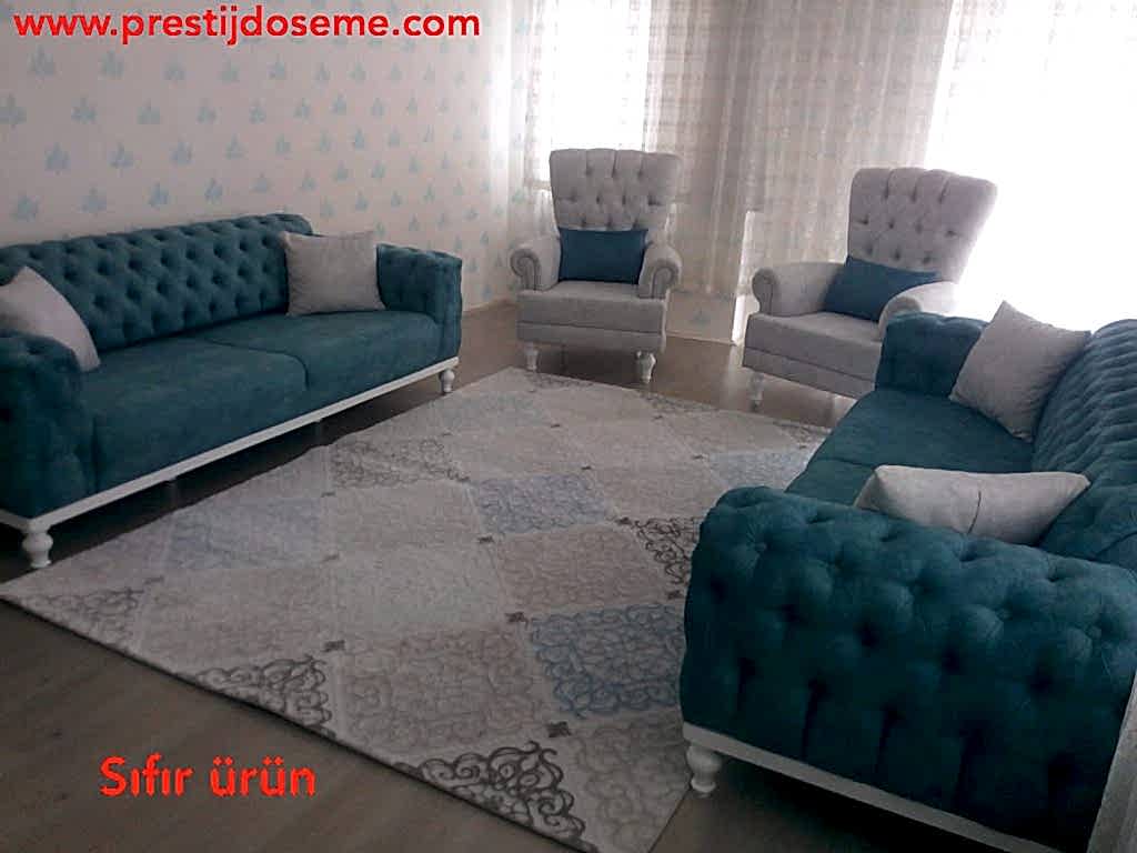 müşterimiz Aynur hanım isteği üzerine chester koltuk takımı birinci sınıf kaliteli kumaş ve kasa ayak kullanılarak 28 dans sünger dahil edilerek kapitone şeklinde chester takım ve 2 adet berjer koltuk yapılarak teslim edilmiştir İyi günlerde kullanmalarını dileriz.